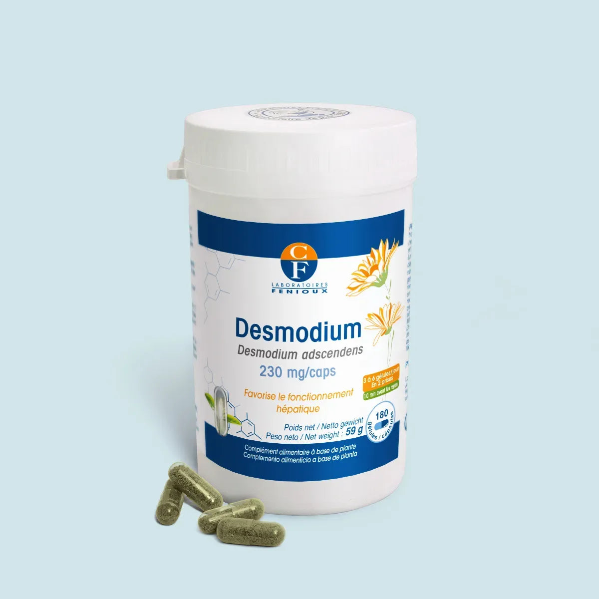 gélule (gélatine) • Poudre de partie aérienne de desmodium (Desmodium adscendens)